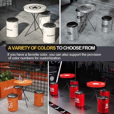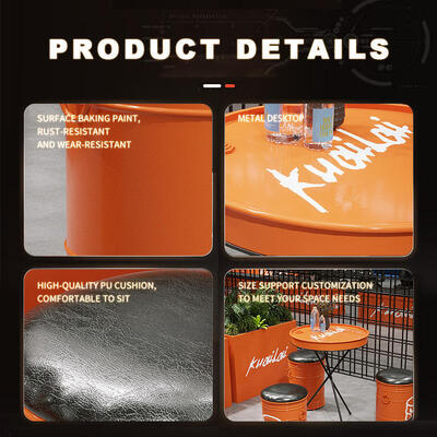 Customizable Color Oil Drum Chair with Durable Iron Frame and Premium PU Leather for Industrial Bar Furniture 1esentation