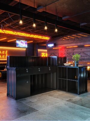 Industrial style reception desk featuring durable iron construction with dual seating functionality, perfect for studios, clothing stores, gyms, coffee shops, or rest areas.